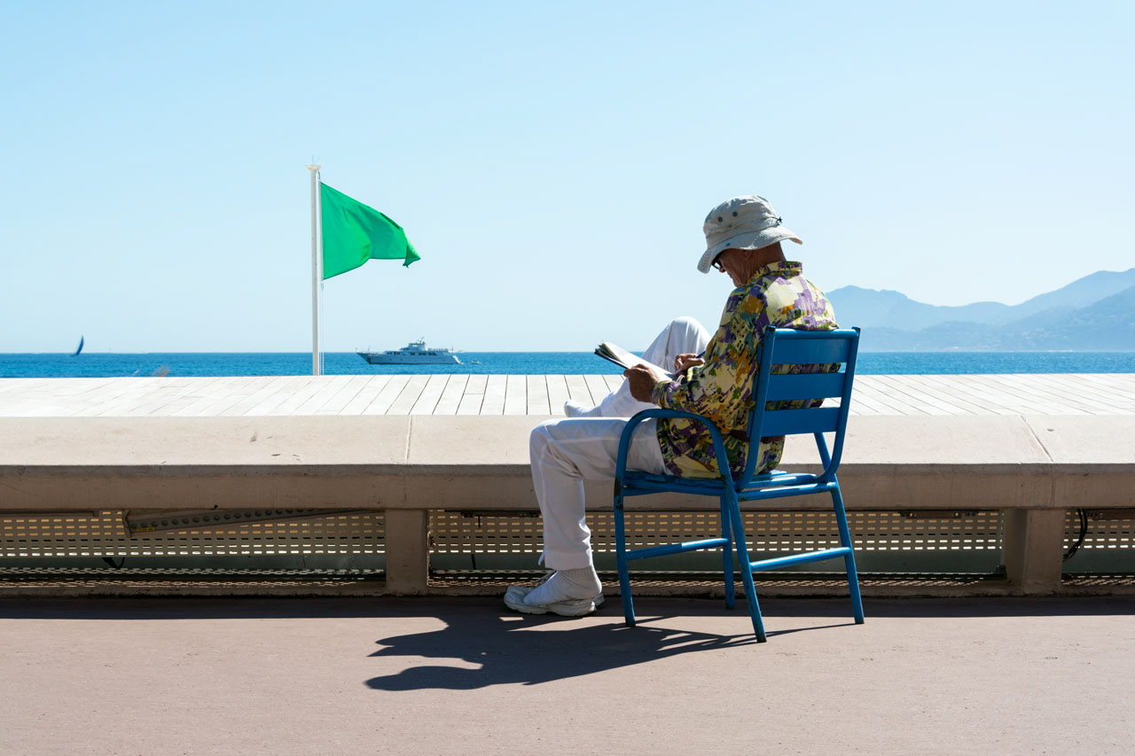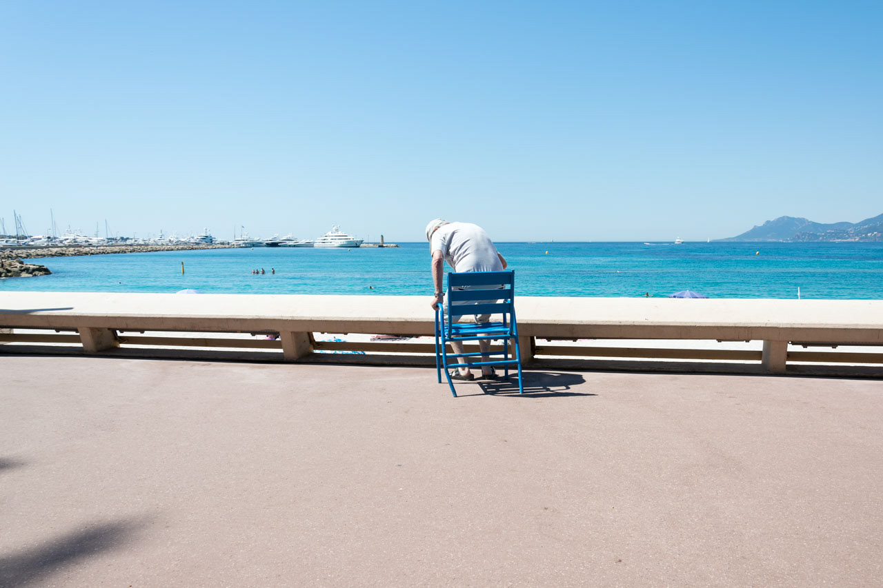 Il progetto "Chaises Bleues" è un racconto del rapporto fra le persone e le sedie pubbliche della Croisette a Cannes.